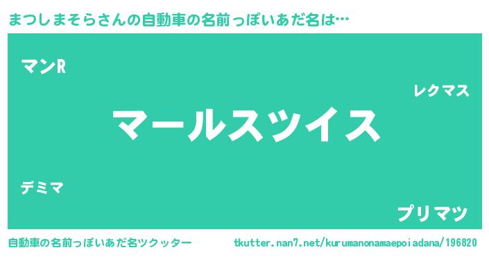 | 男性向けラノベタイトル風あだ名 | 『マツシマソラスレイヤー』 |