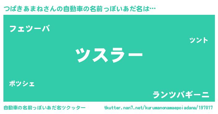 | 欧米人風あだ名 | 『つばきあまねクリステル』 |