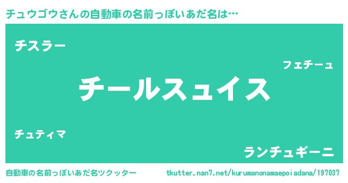 | 男性向けラノベタイトル風あだ名 | 『チュウゴウスレイヤー』 |