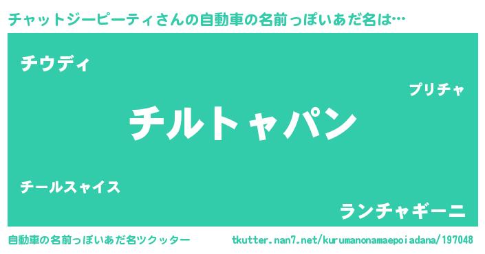 | 意味不明あだ名 | 『とにかく怪しいチャットジーピーティ』 |