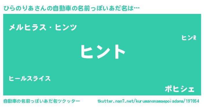 | 女子向けラノベタイトル風あだ名 | 『ひらのりあの卵を拾いまして』 |