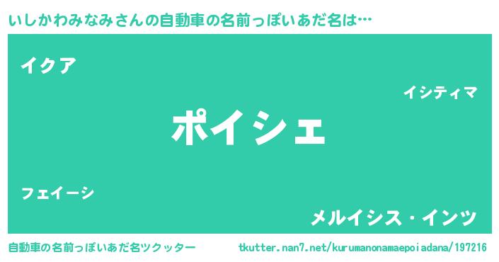 | ヒーロー風カッコイイあだ名 | 『仮面イシダー』『ネオイシカワミナミ』 |