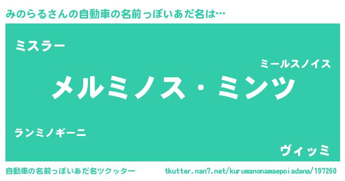 | 男性向けラノベタイトル風あだ名 | 『Re:みのらるから始める異世界生活』 |