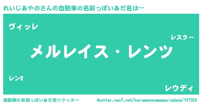 | 意味不明あだ名 | 『自称れいじあやの』 |