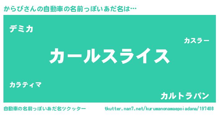 | 男性向けラノベタイトル風あだ名 | 『カラピスレイヤー』 |