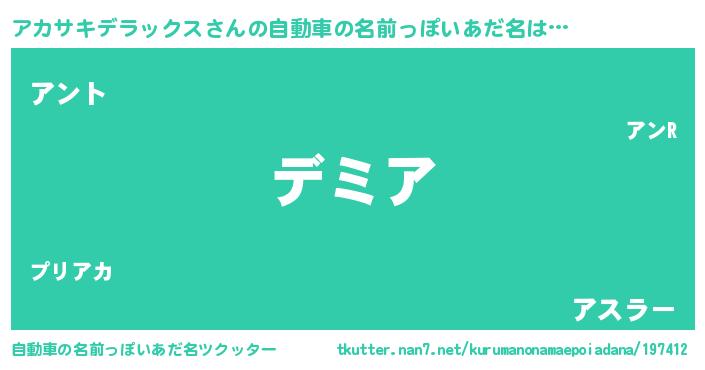 | 胡散臭い通販商品みたいなあだ名 | 『来世でも幸せになれる健康食品…その名も「アカサキデラックス」』 |