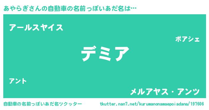 | 男性向けラノベタイトル風あだ名 | 『あやらぎという概念が存在しない退屈な世界 』 |