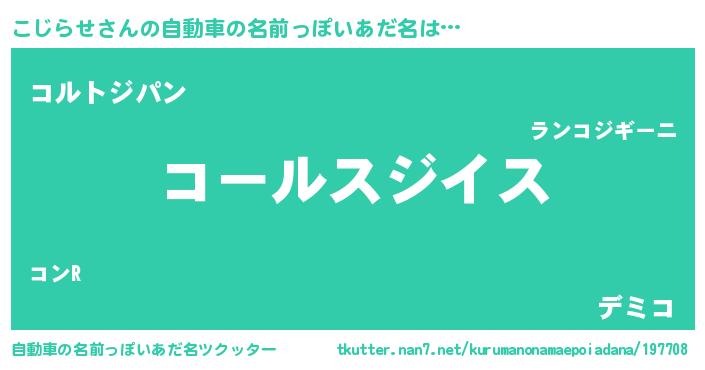 こじらせさんの自動車の名前っぽいあだ名をツクッター!