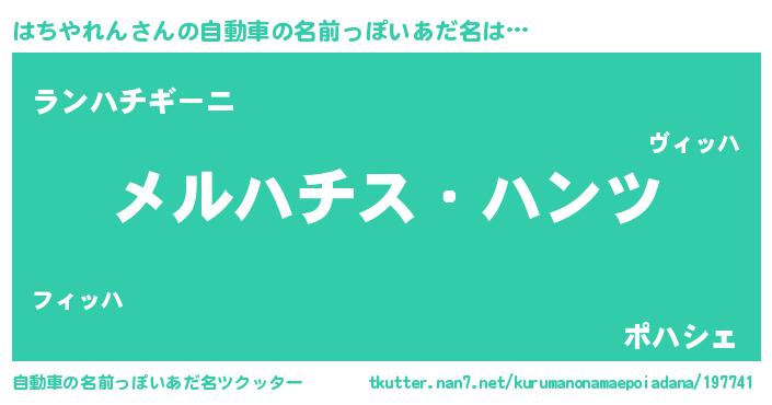 | 意味不明あだ名 | 『自称はちやれん』『永久保存はちやれん』 |