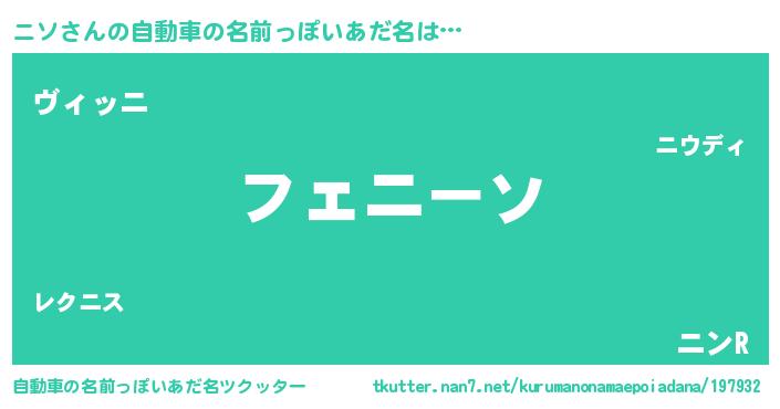 | ヒーロー風カッコイイあだ名 | 『ネオニソ』『慈愛の使者ニソ』 |