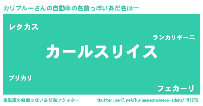 | 女子向けラノベタイトル風あだ名 | 『カリブルーの玉の輿計画!』 |