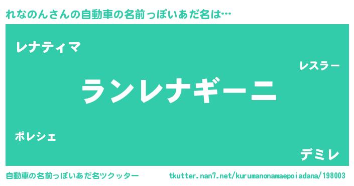 | 胡散臭い通販商品みたいなあだ名 | 『億万長者になれるブレスレット…その名も「れなのん」』 |