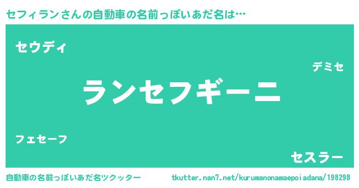 | 意味不明あだ名 | 『住所不定無職セフィラン(59歳)』 |