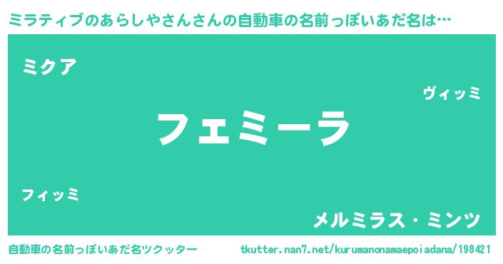 | 意味不明あだ名 | 『ミラティブのあらしやさんフォーエバー』 |