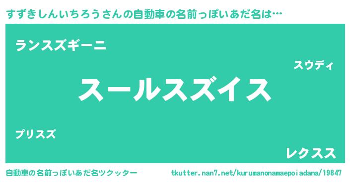 | 男性向けラノベタイトル風あだ名 | 『スズキシンイチロウスレイヤー』 |