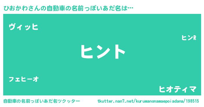 | 意味不明あだ名 | 『とにかく怪しいひおかわ』 |