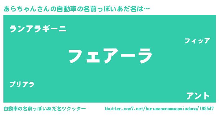 | ファンタジー風あだ名 | 『カークアララー』『ファントムアラス』 |