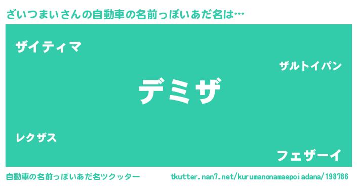 | 男性向けラノベタイトル風あだ名 | 『ざいつまいという概念が存在しない退屈な世界 』 |