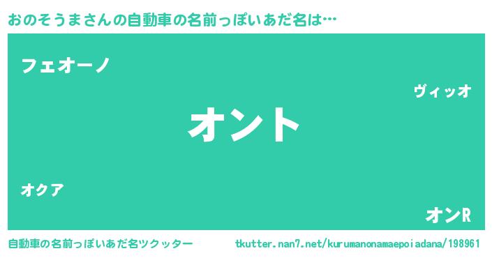 | 男性向けラノベタイトル風あだ名 | 『おのそうまの嫁は女の子じゃないと思った?』 |