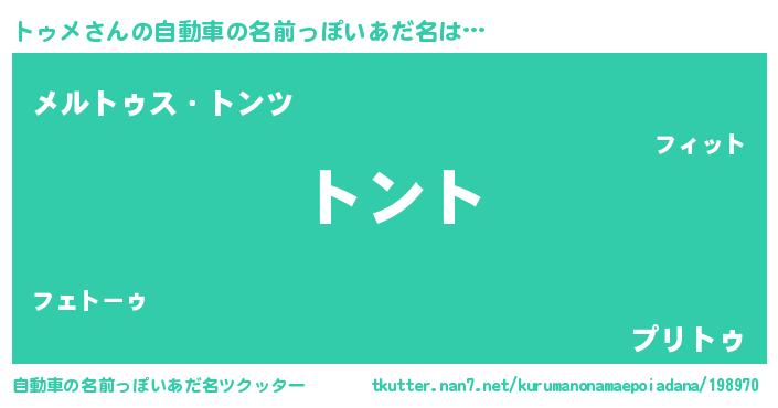 | 意味不明あだ名 | 『とにかく怪しいトゥメ』『自称トゥメ』 |