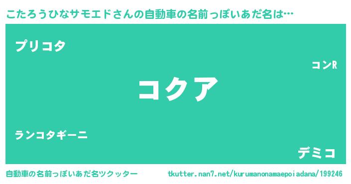 こたろうひなサモエドさんの自動車の名前っぽいあだ名をツクッター!
