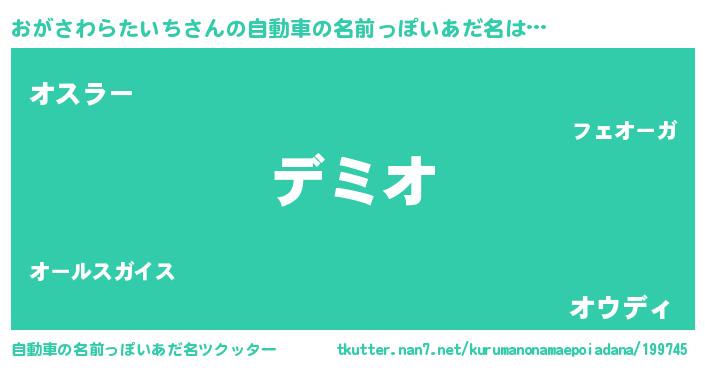| 男性向けラノベタイトル風あだ名 | 『おがさわらたいちという概念が存在しない退屈な世界 』 |