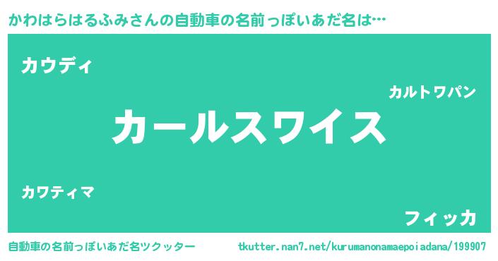 | 男性向けラノベタイトル風あだ名 | 『転生したらかわはらはるふみだった件』 |