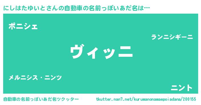 | ヒーロー風カッコイイあだ名 | 『ネオニシハタユイト』『仮面ニシダー』 |