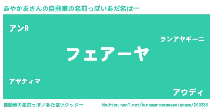 | ヘコむあだ名 | 『あやにゅー』『あやかあ(小並感)』 |