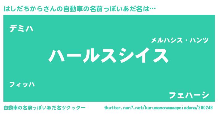 | 胡散臭い通販商品みたいなあだ名 | 『前代未聞の健康食品…その名も「はしだちから」』 |
