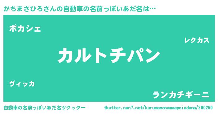 | 意味不明あだ名 | 『とにかく怪しいかちまさひろ』 |