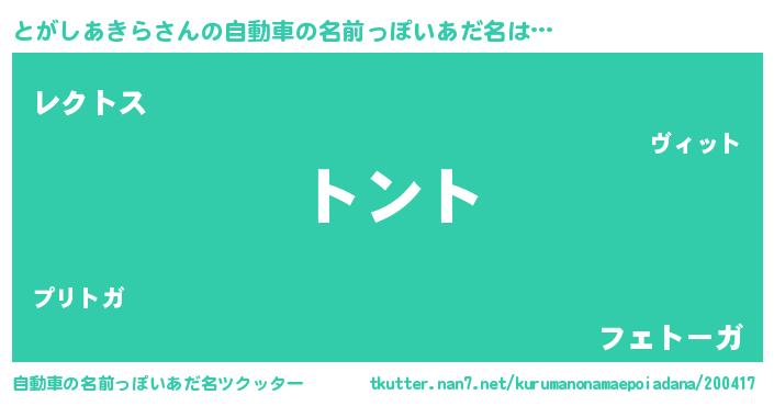 | ポケモン風あだ名 | 『ヒトガシアキラ』『トガセウス』 |