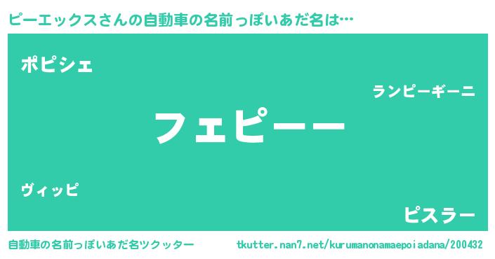 | 意味不明あだ名 | 『住所不定無職ピーエックス(3歳)』 |