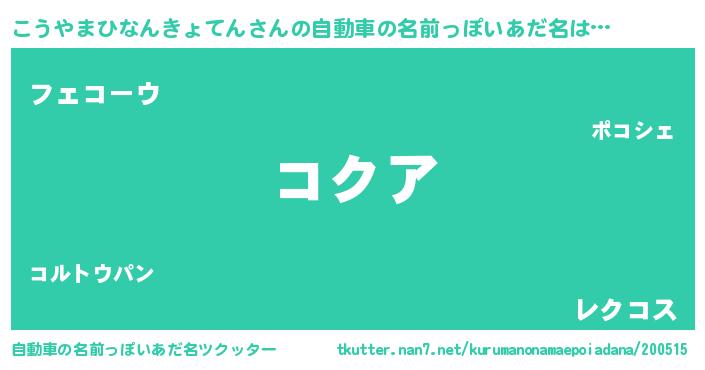 | 欧米人風あだ名 | 『こうやまひなんきょてんクリステル』 |