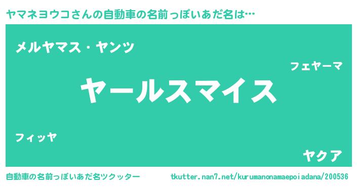 | 欧米人風あだ名 | 『トリンドルヤマネヨウコ』 |