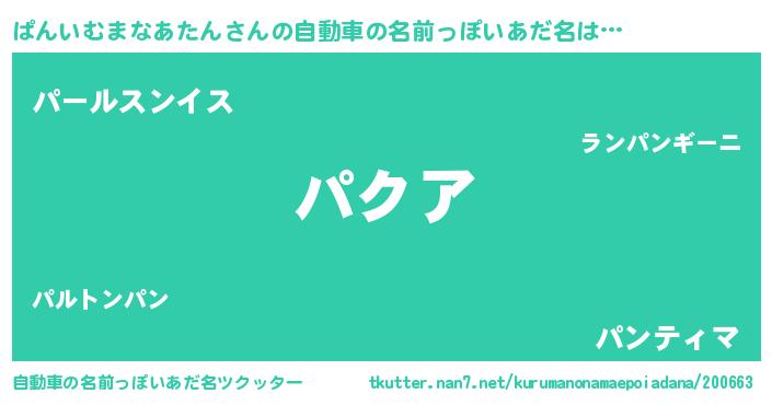 | 欧米人風あだ名 | 『ぱんいむまなあたんクリステル』 |