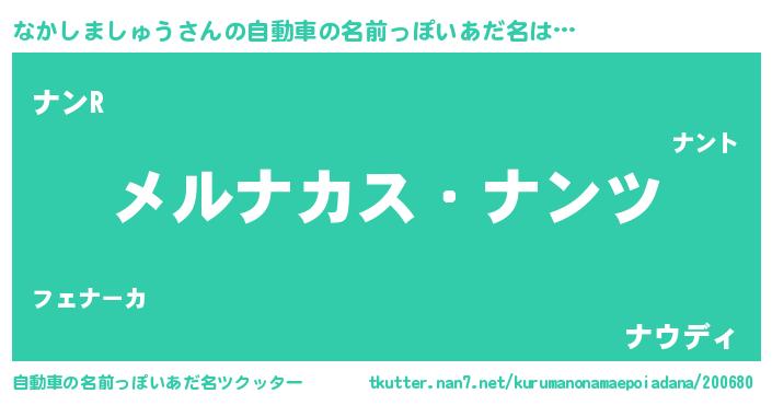 | 男性向けラノベタイトル風あだ名 | 『Re:なかしましゅうから始める異世界生活』 |