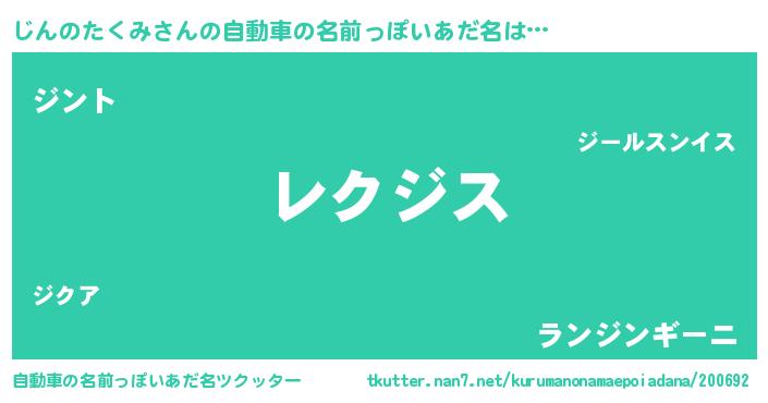 | 意味不明あだ名 | 『自称じんのたくみ』 |