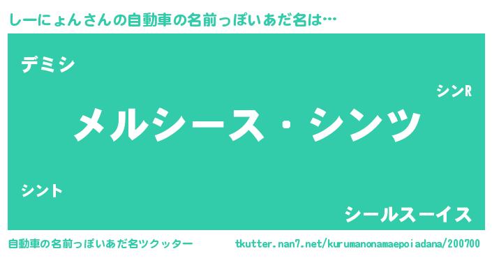 | ヘコむあだ名 | 『しーにょん(震え声)』『しーぷりん』 |