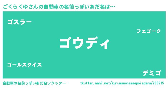 | 料理風あだ名 | 『ごくらくゆのカルパッチョ風』 |