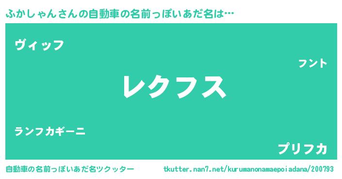 ふかしゃんさんの自動車の名前っぽいあだ名をツクッター!