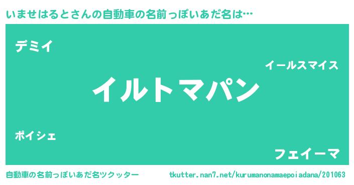 | 欧米人風あだ名 | 『ウサインいませはると』 |