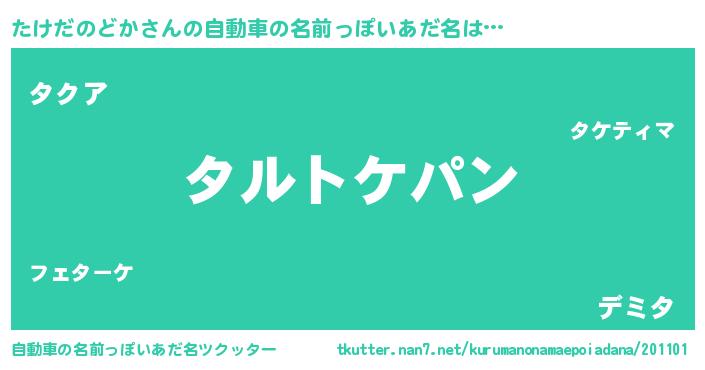 | 女子向けラノベタイトル風あだ名 | 『たけだのどかの卵を拾いまして』 |