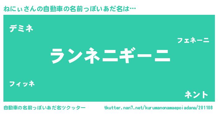 ねにぃさんの自動車の名前っぽいあだ名をツクッター!