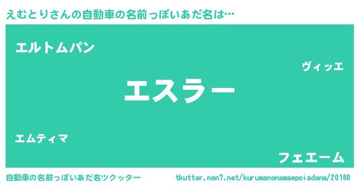 | 欧米人風あだ名 | 『えむとりクリステル』 |