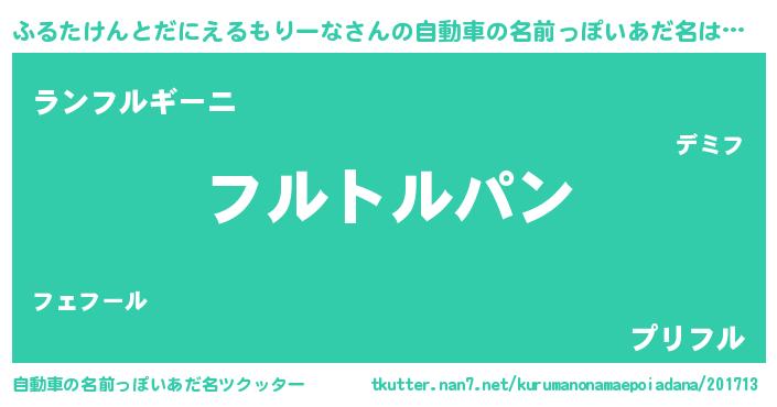 | 胡散臭い通販商品みたいなあだ名 | 『信頼と実績のサプリメント…その名も「ふるたけんとだにえるもりーな」』 |