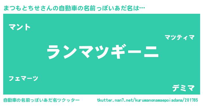 | ポケモン風あだ名 | 『マツゴンZ』『ヒマツモトチセ』 |