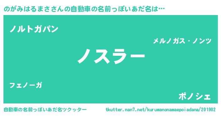 | 意味不明あだ名 | 『のがみはるまさフォーエバー』 |