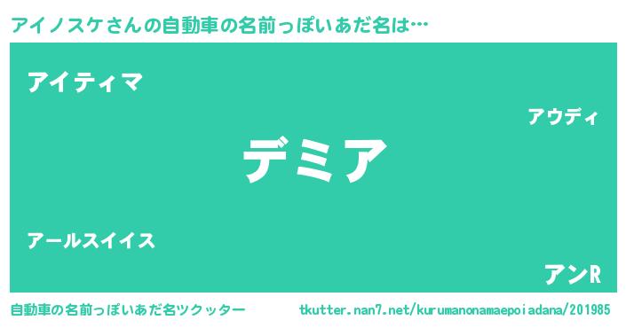 | 男性向けラノベタイトル風あだ名 | 『アイノスケという概念が存在しない退屈な世界 』 |