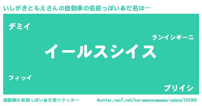 | 胡散臭い通販商品みたいなあだ名 | 『来世でも幸せになれる水素水…その名も「いしがきともえ」』 |